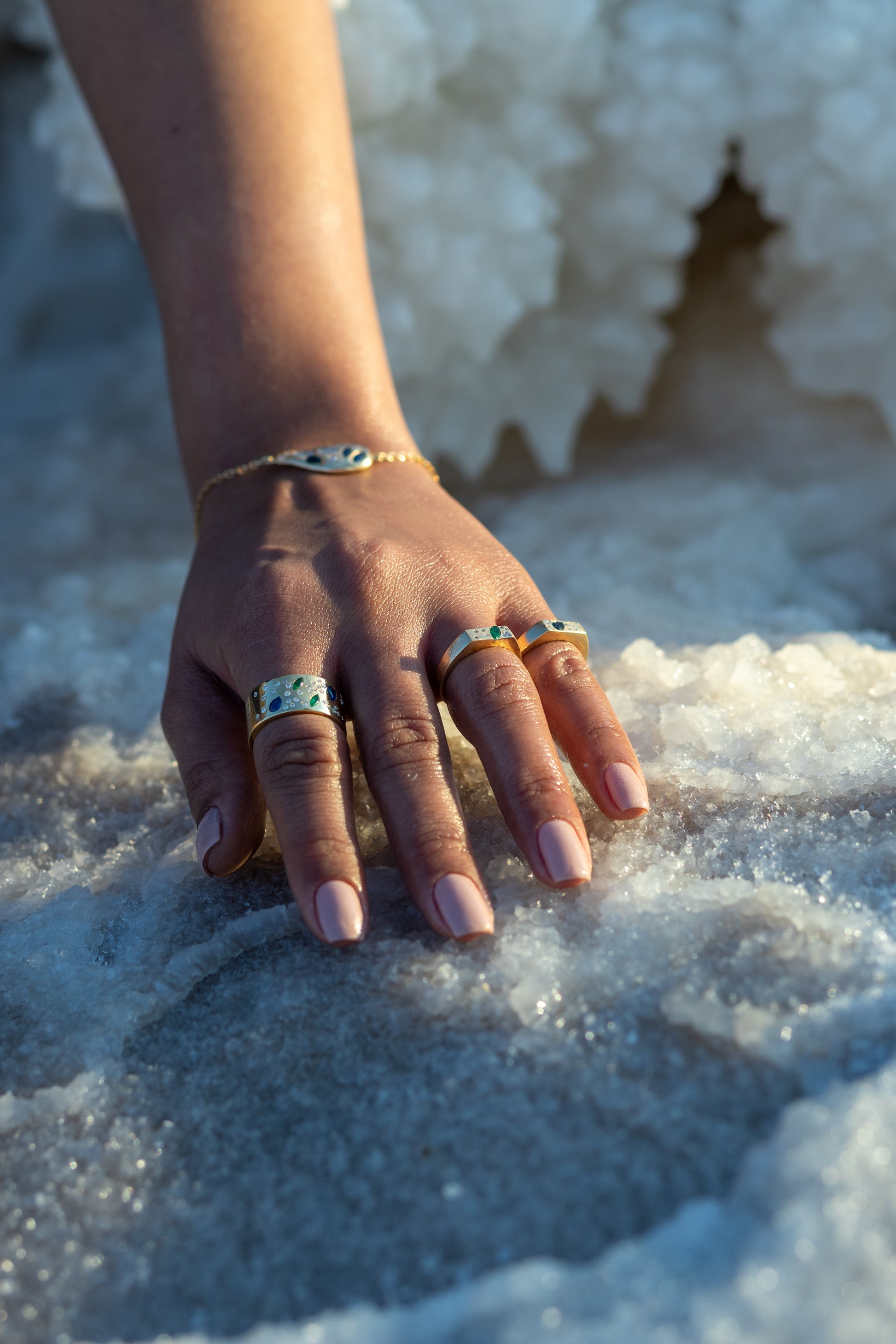 All our pieces are made of 18k gold, high quality diamonds and natural gemstones.