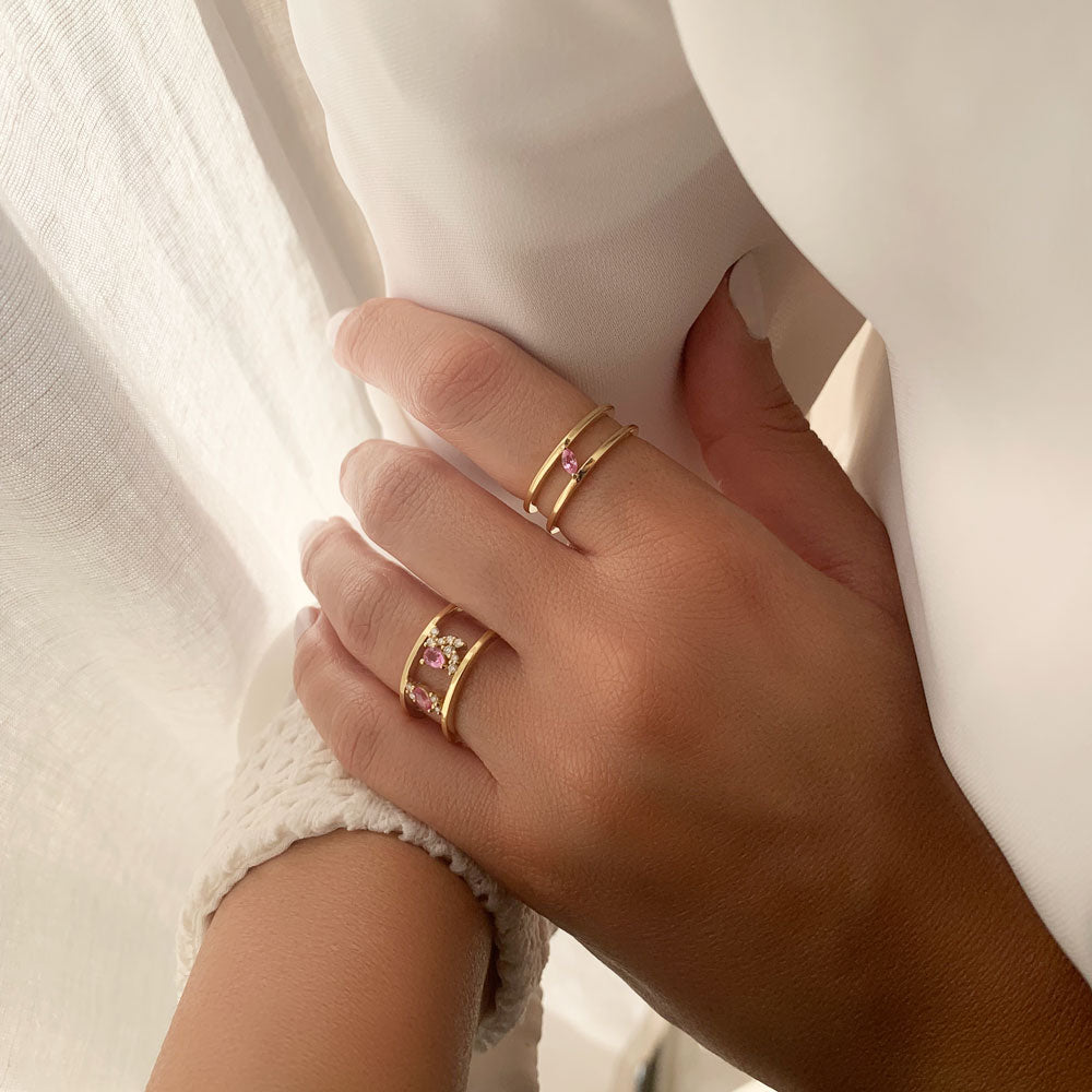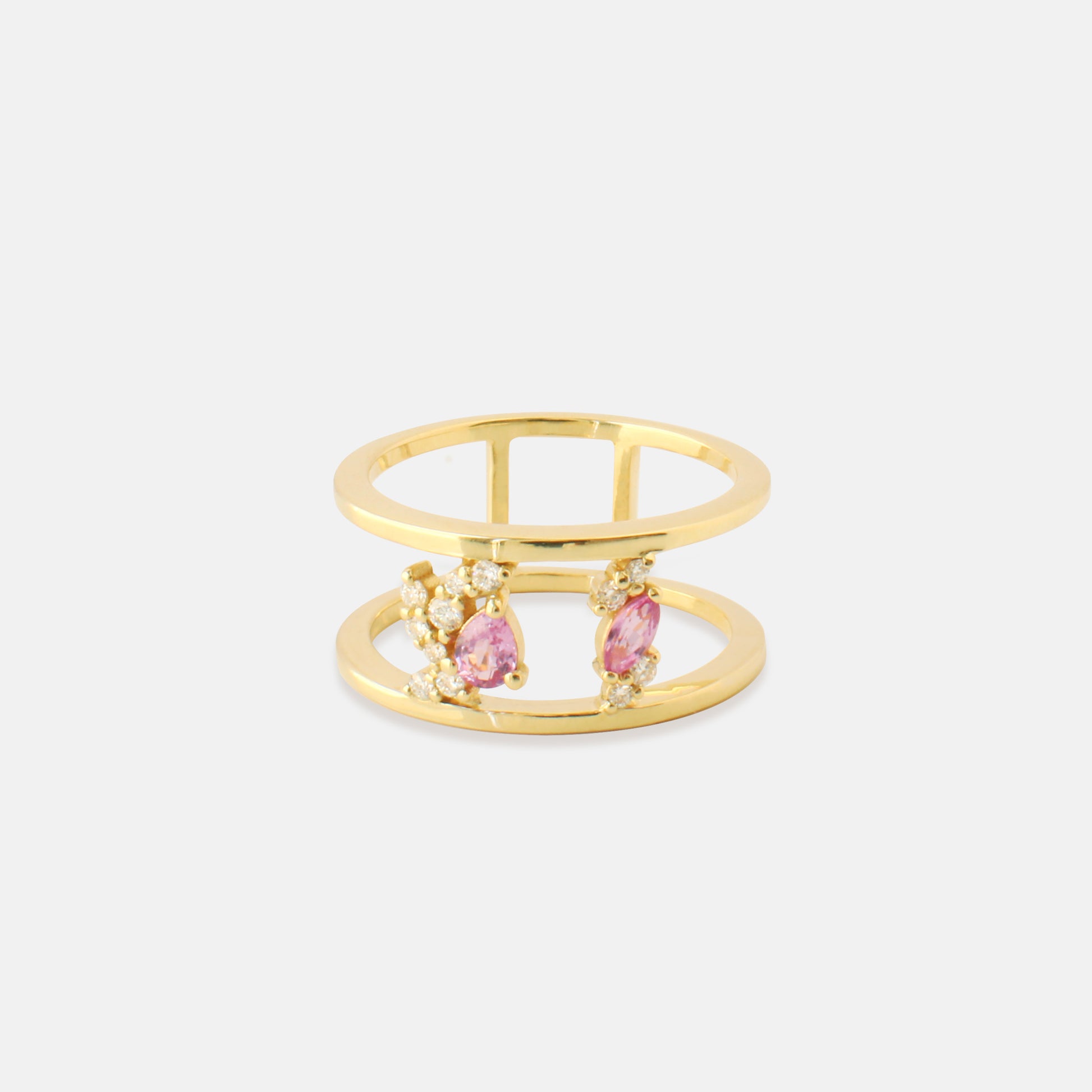 Wide Trail Ring in Diamonds & Pink Sapphires