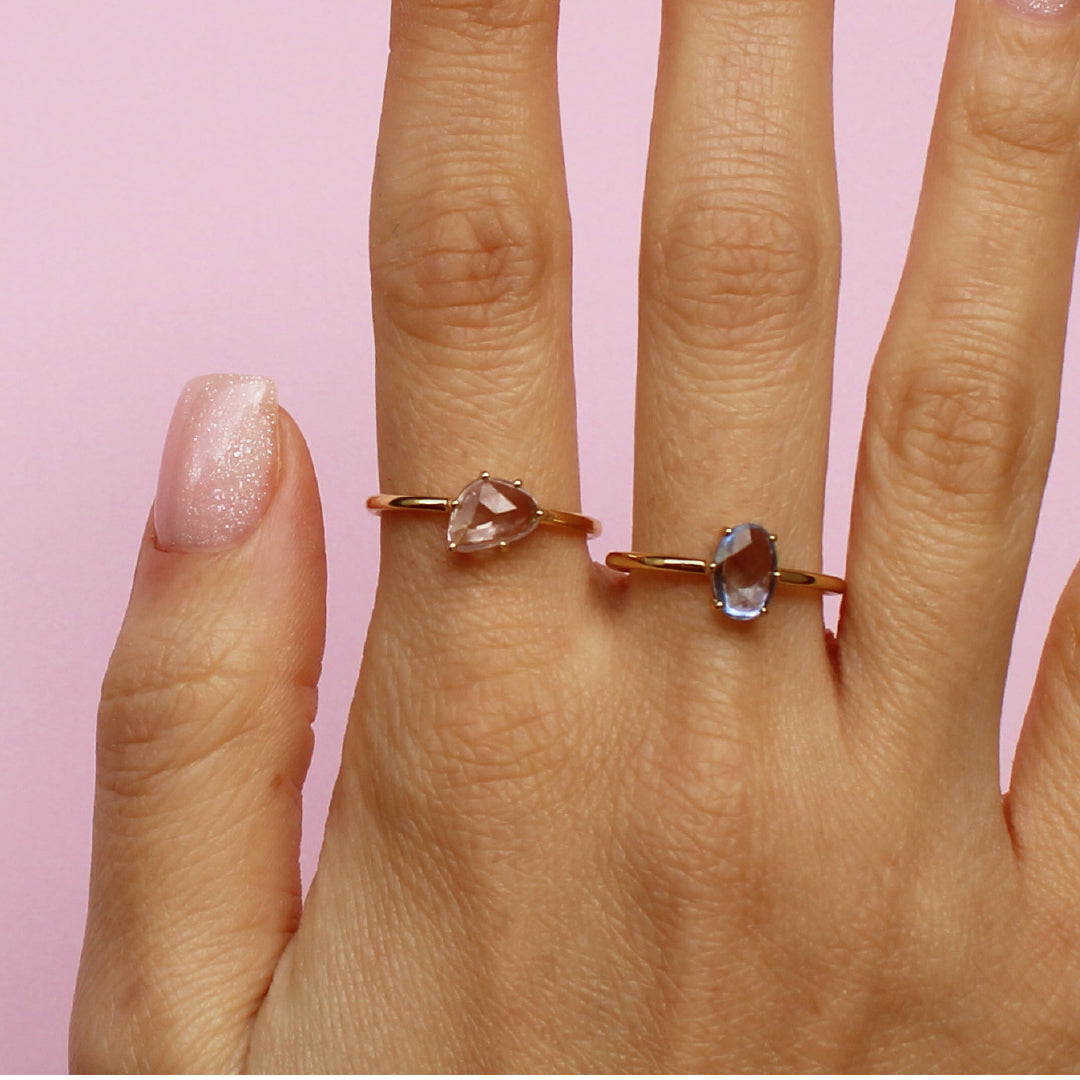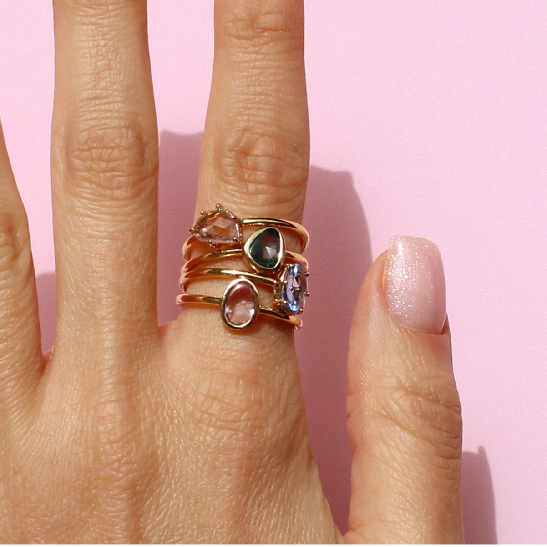 Handmade and unique, the collection is made of pastel colored rose cut sapphire stones where each stone is a one-of-a-kind and no two stones are the same! Perfect for a romantic gesture or an act of self love! Shop the ready-made pieces or request your own customization and your choice of stone!