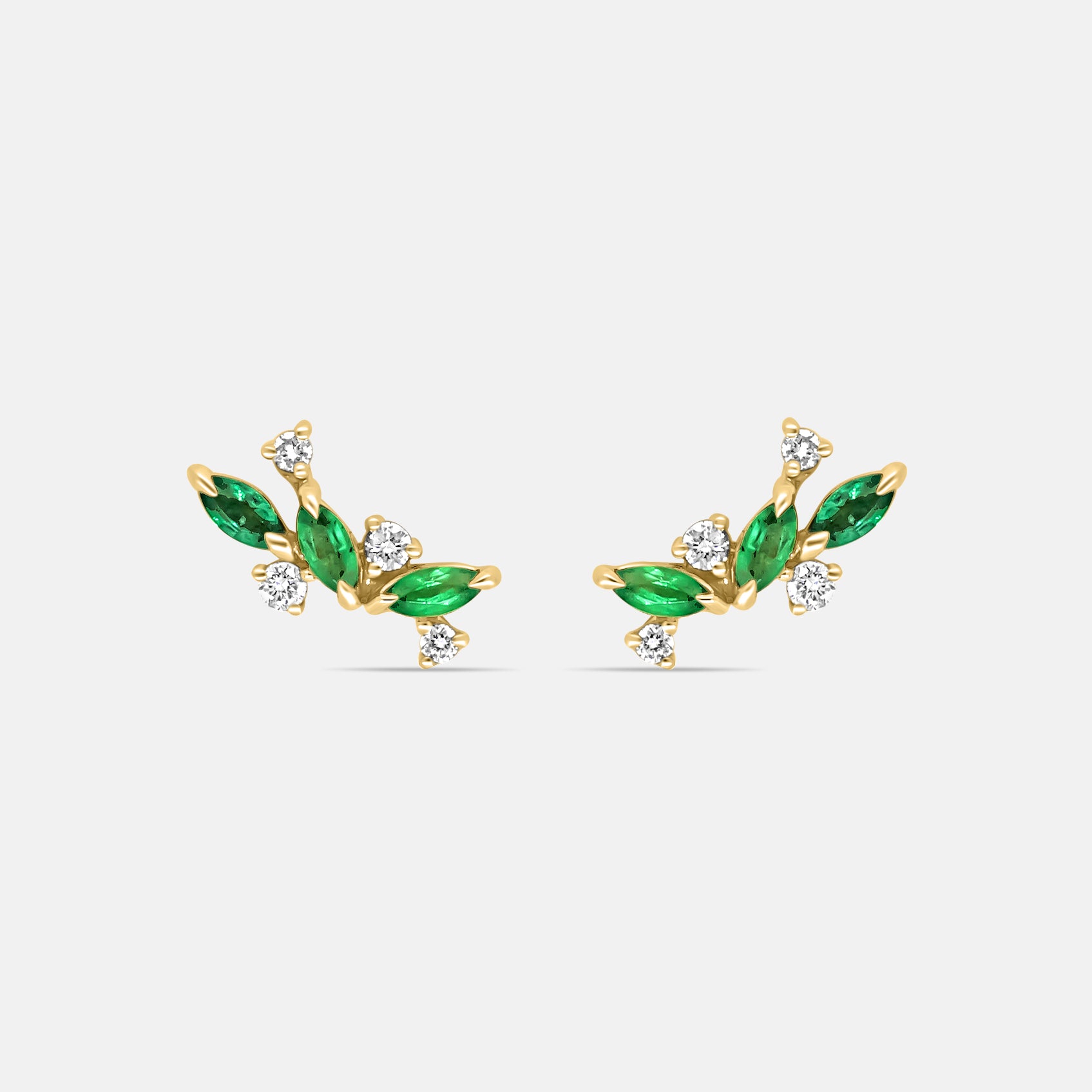 Leaf trail Earring crawlers in Diamonds & Emeralds or pink Sapphires