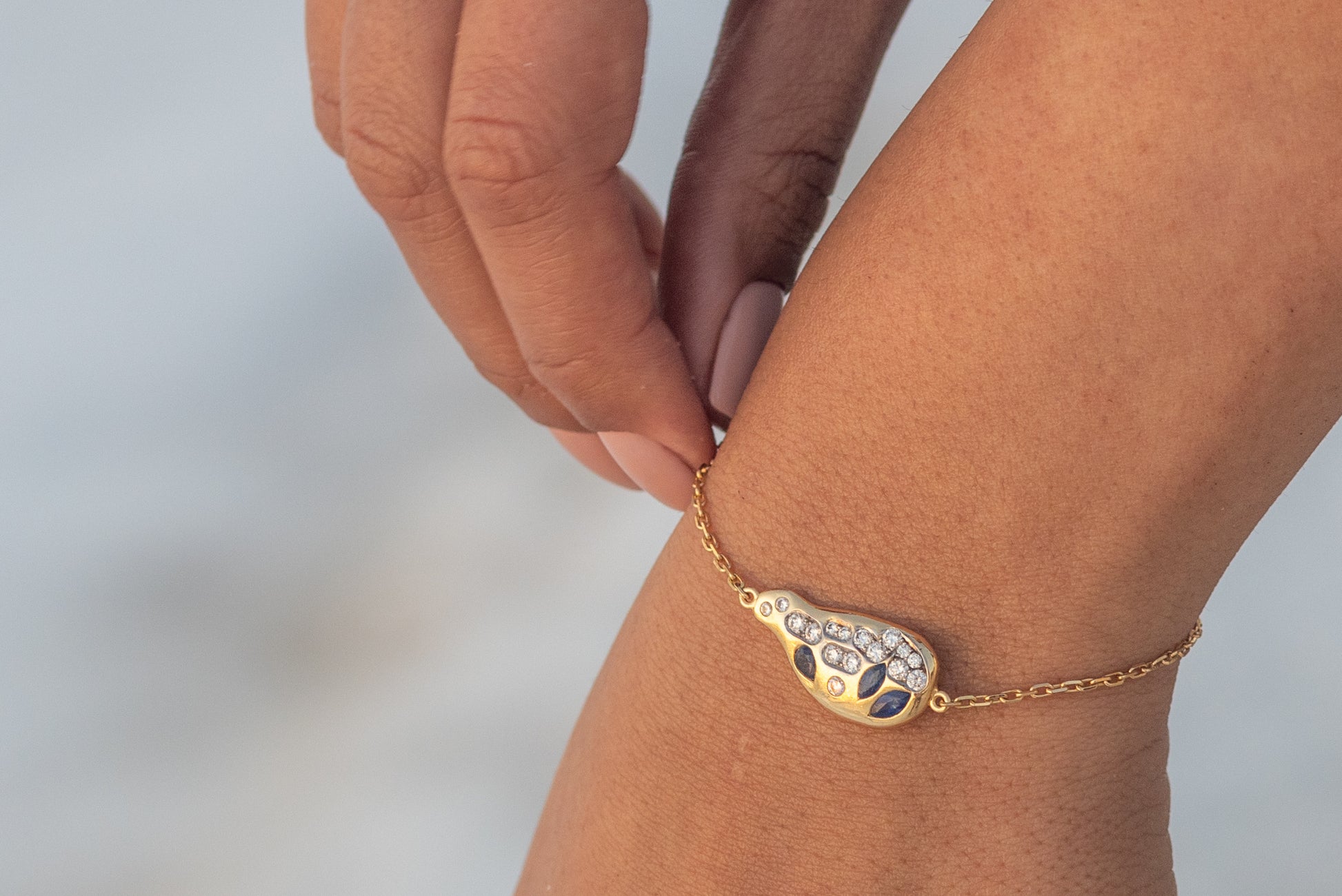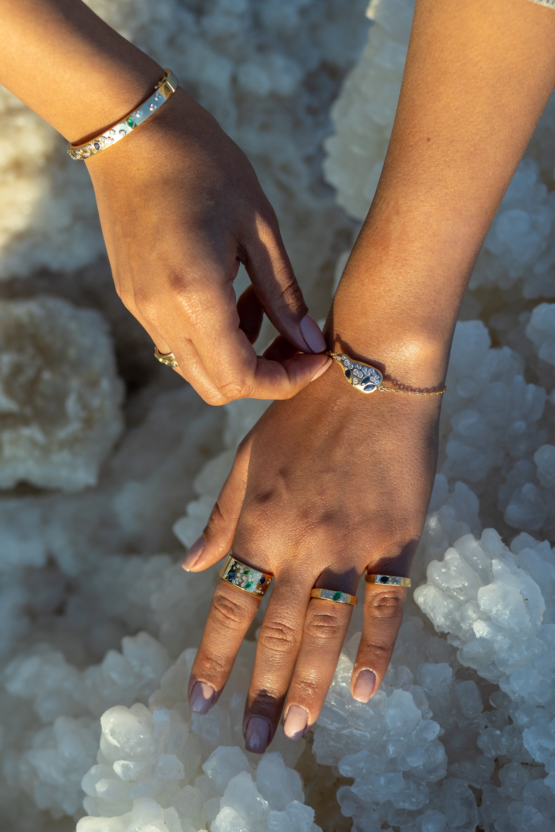 Inspired by the Great Lake Tiberias in Palestine, This dazzling beauty is crafted with Natural Diamonds, Blue Sapphires to give you that star-studded shine. Get ready to take your style to the galaxies and beyond!