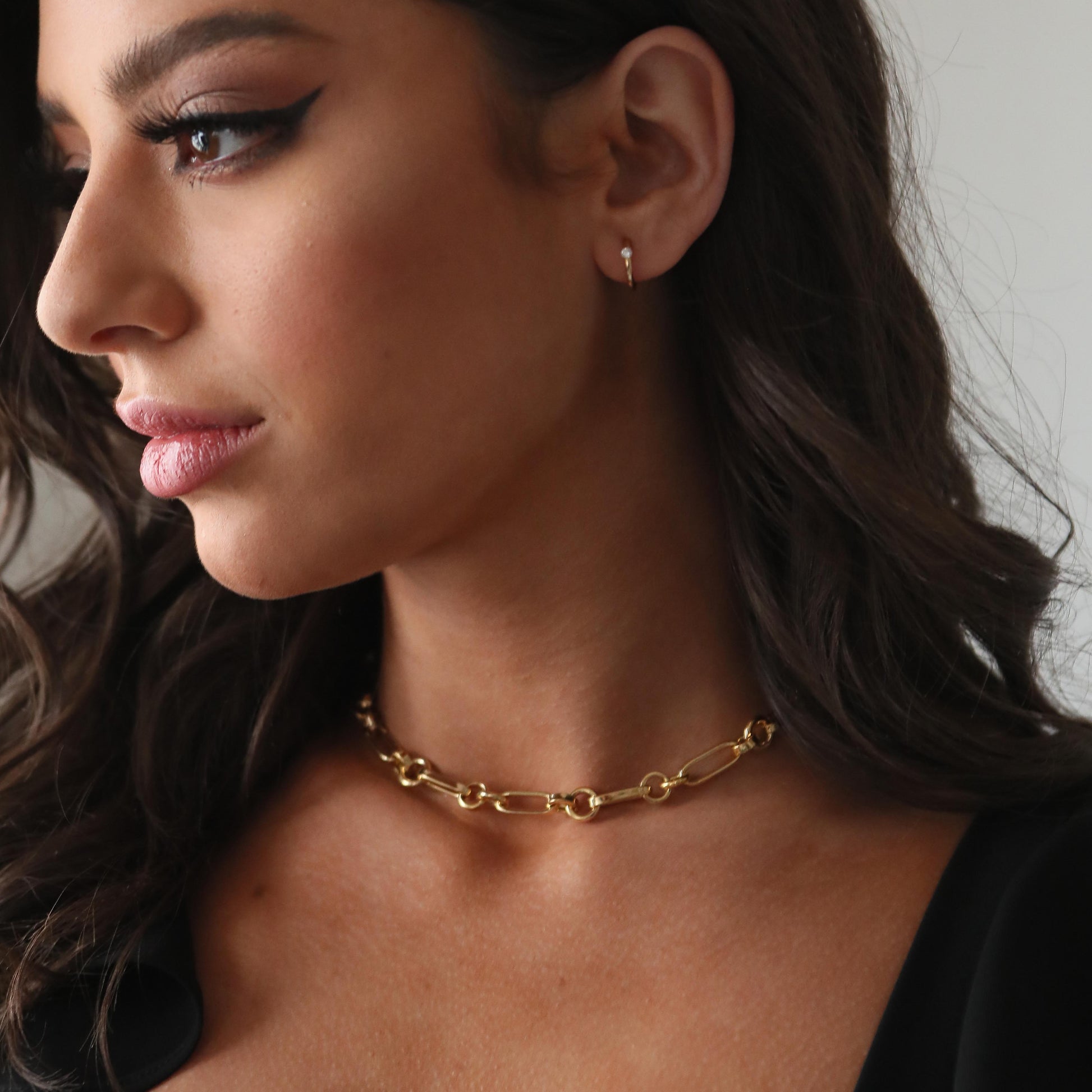 A Maru signature piece made with three types of links forming a stylish and unusual chain. This is a bold statement piece designed for trendsetters!