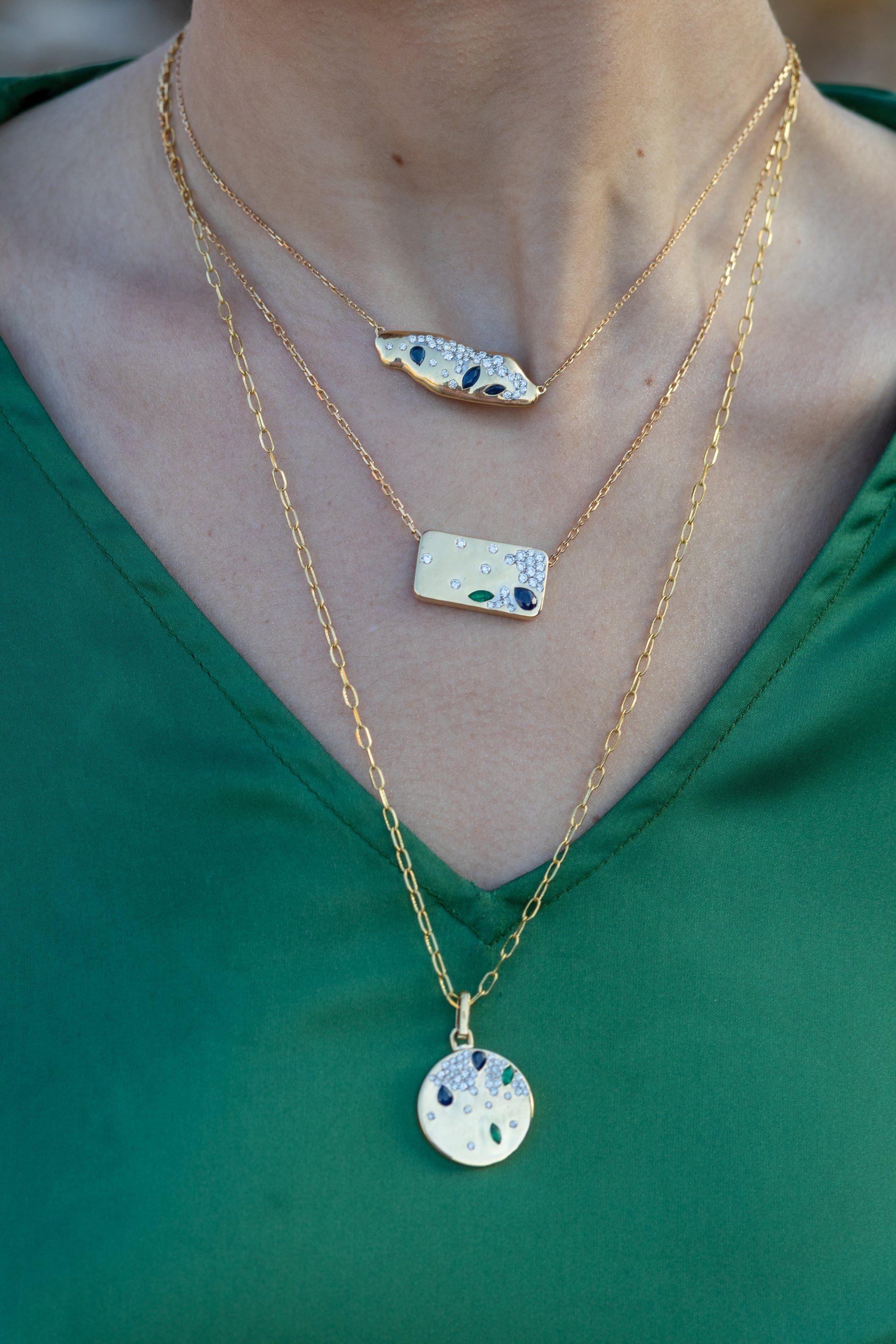 Venus Charm Pendent in Diamonds, Emeralds & Sapphires