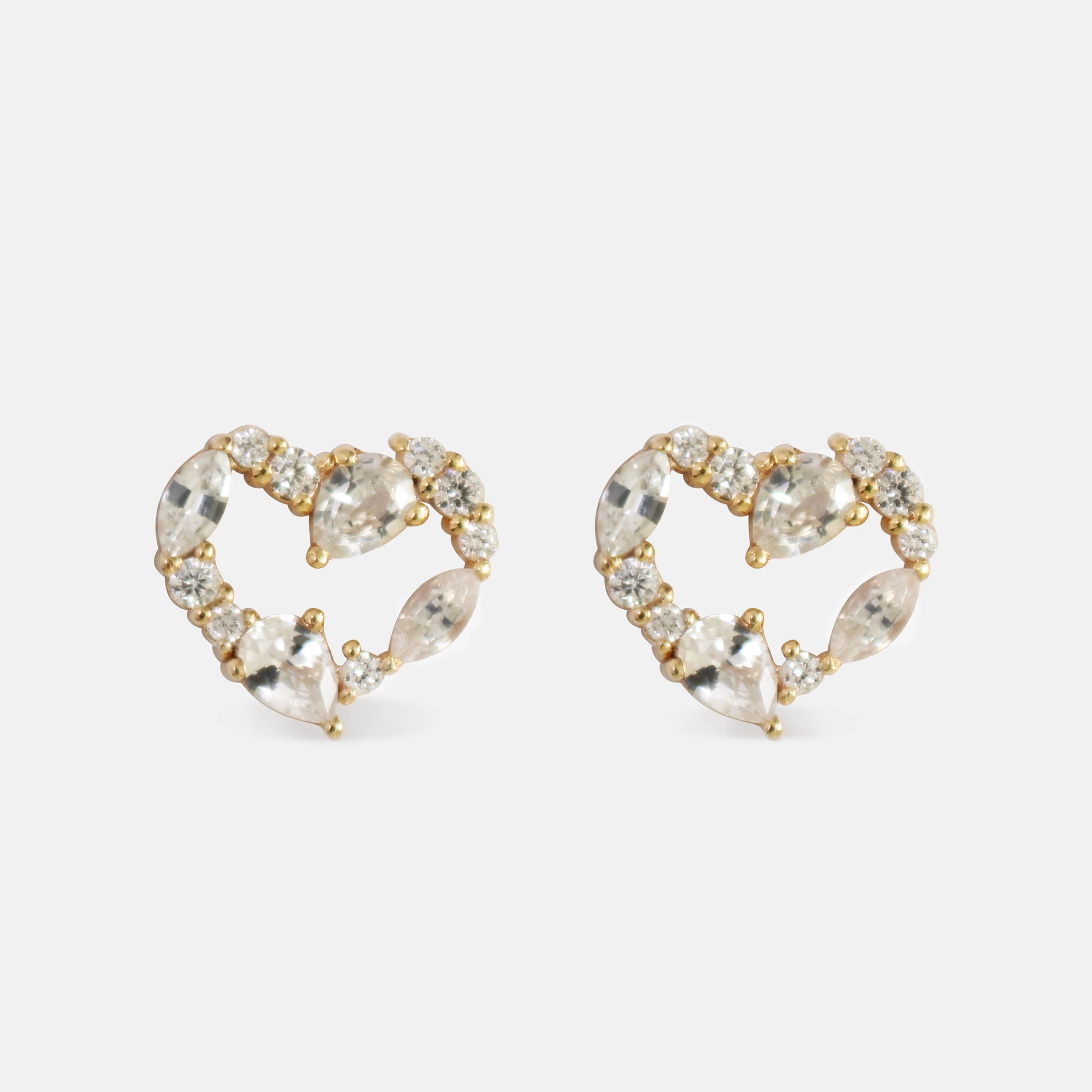 Wild heart Stud Earrings in Diamonds & White Sapphires